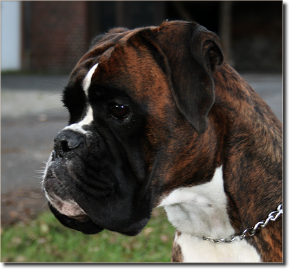 Goldgestromt, gross, etwas kräftiger kantiger Oberkopf breiter voller Fang, Stopp und Stulp markant, gerader kräftiger Zahnstand, sehr gute Kinnmarkierung. Quadratisches Gebäude, gut getragener Hals, übergehend in sehr gut markiertem Wiederrist, sehr gute Brusttiefe,vorne gut hinten sehr gut gewinkelt, etwas tief angesetzte kupierte Rute. Läuft mit guten Aktionen der Vor und Hinterhand.